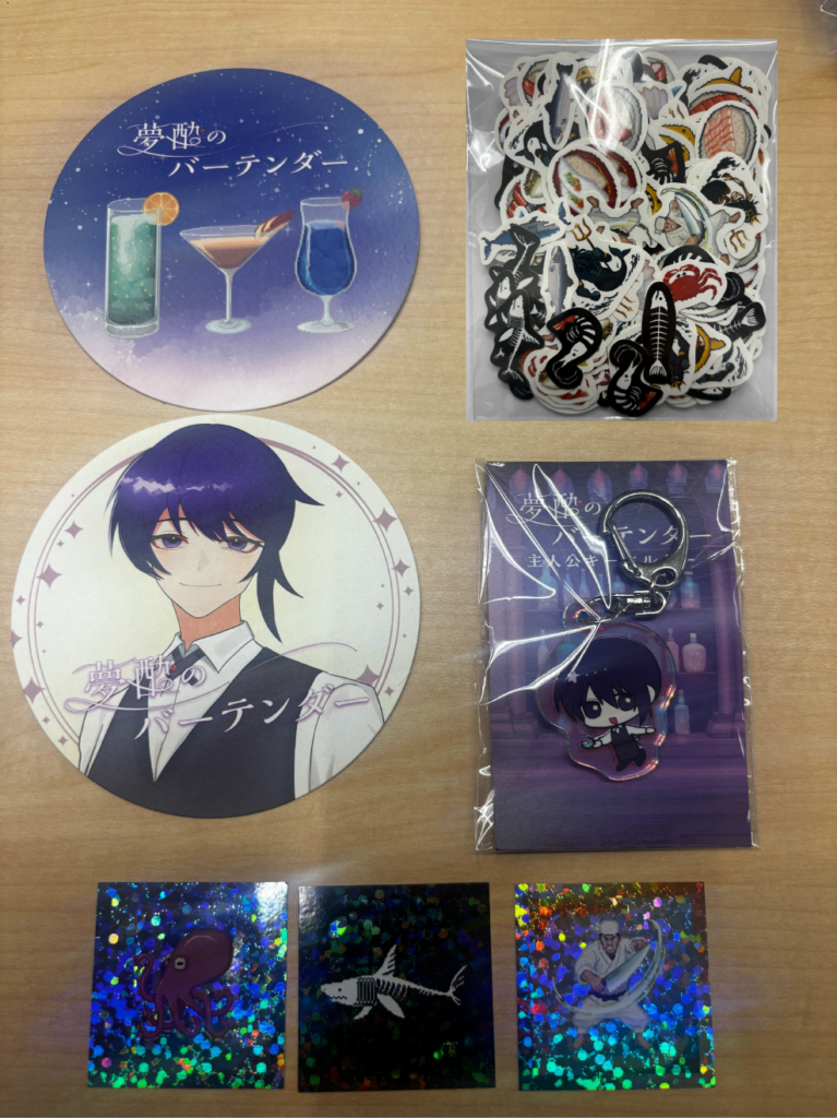 - 物販:アクリルキーホルダー(20個)、キラキラステッカー(100枚ずつ)